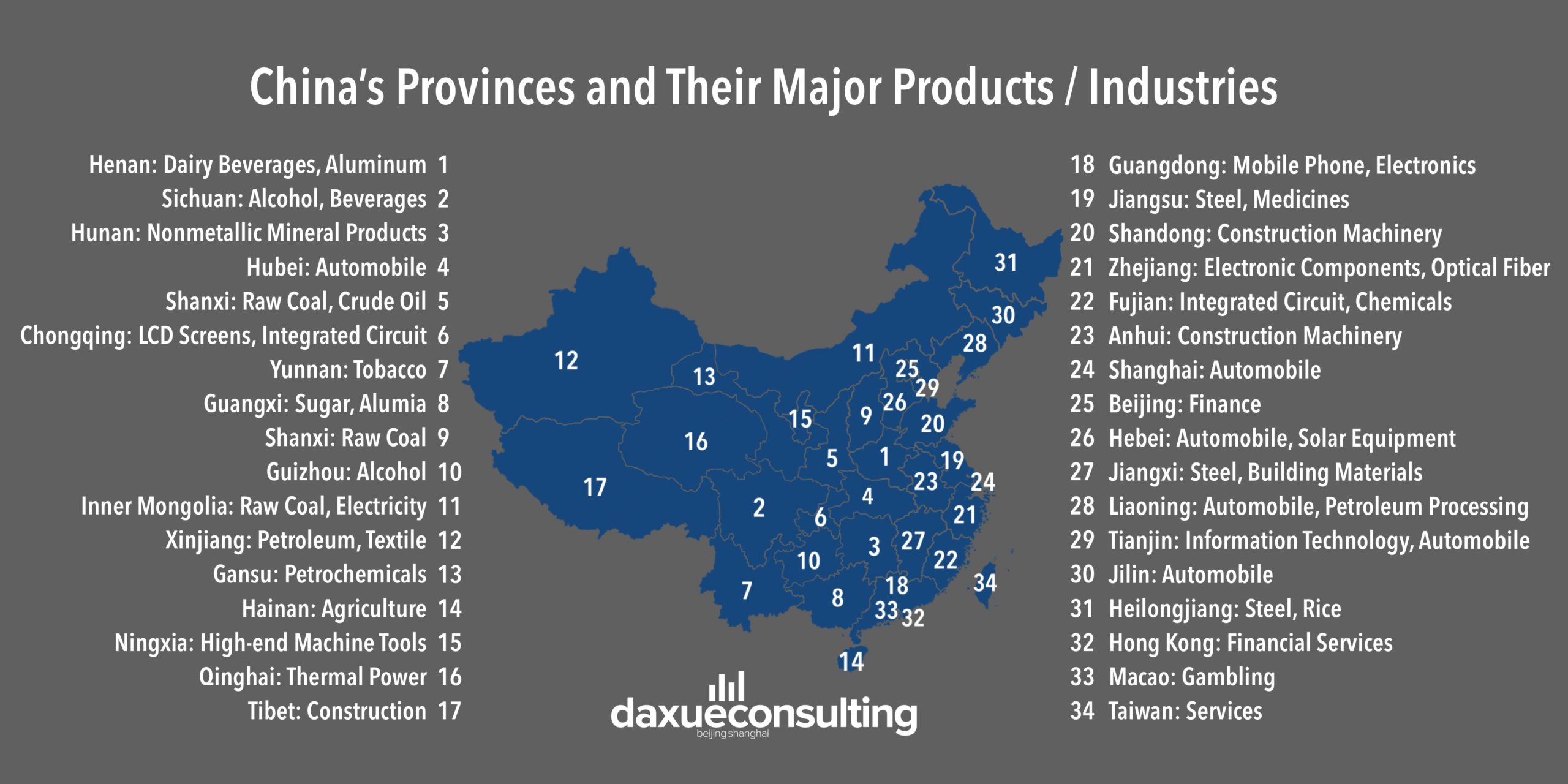 Eastern coastal provinces of China have well-developed industrial chains and advanced production technologies, such as electronics and telecommunications. Meanwhile, central provinces have more diverse secondary industries, such as mining and iron and steel, due to their rich natural resources.